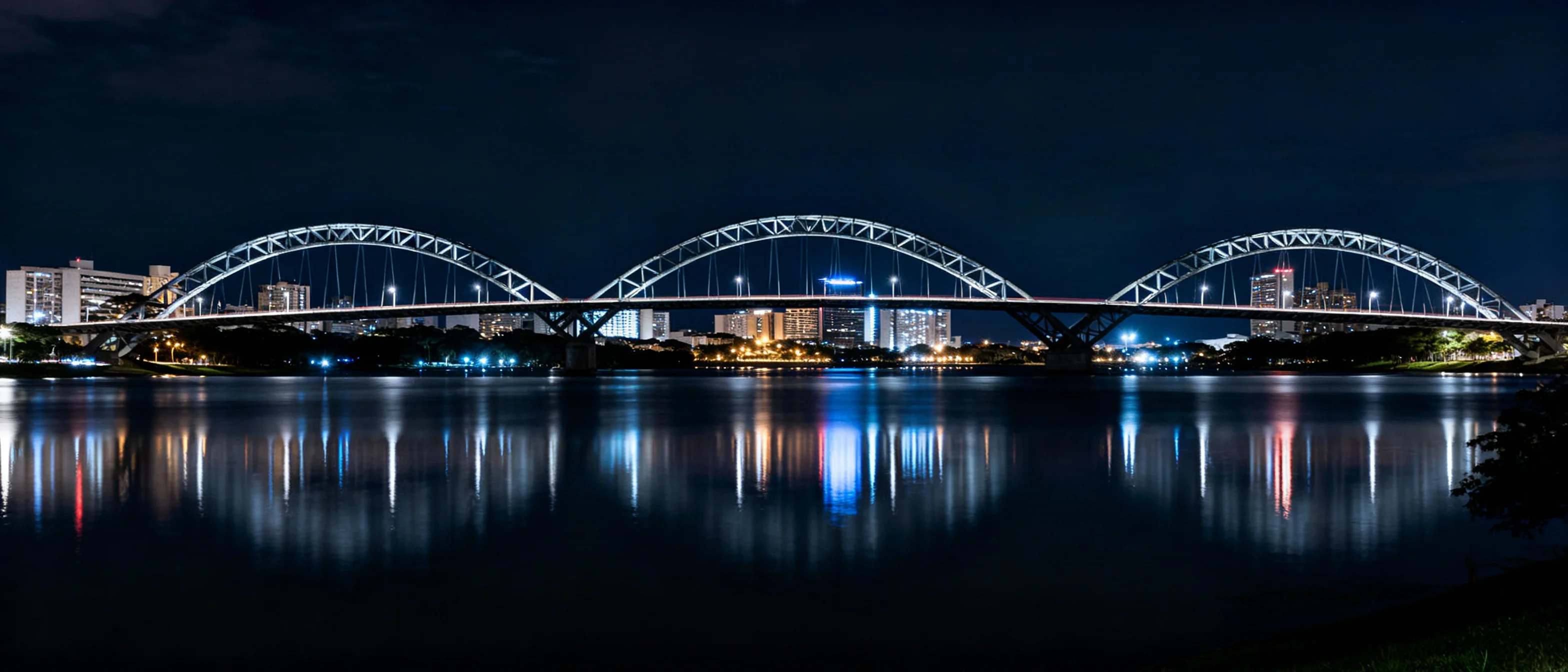 Мост длиной 1200 м и шириной 24 м перекинут через искусственное озеро Параноа, и поистине является архитектурной дизайнерской конструкцией из стали и бетона органично