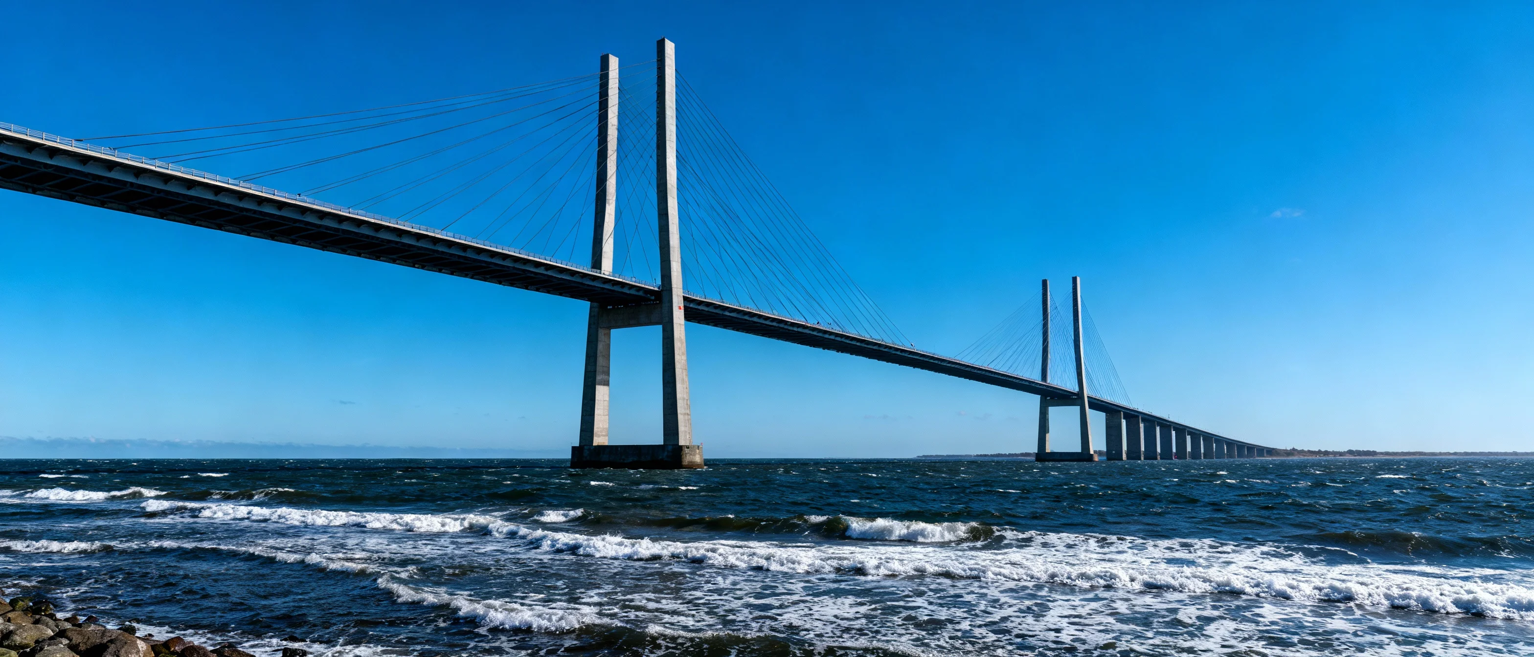 ![]() Вся 18-километровая транспортная система состоит из висячего моста и железнодорожного тоннеля на востоке, промежуточного острова Спрогё, и автомобильно-железнодорожного моста на западе. Автомобильное движение четырёхполосное, железнодорожное — двухпутное. Восточный виадук Восточного моста имеет длину 2800 м, западный — 1700 м. Главная часть представлена подвесным мостом с центральным пролётом в 1624 м и двумя боковыми пролетами по 585 м, высота пролета — 57 м. Пилоны выполнены из железобетона, а настил из стали. Пилоны поднимаются на 280 м над уровнем моря и состоят из двух пустотелых конусообразных колонн, соединенных двумя траверсами. Деформация жёсткой секции колонн едва заметна в верхней части и более отчётливо прорисовывается под дорожным настилом. Таким образом удалось сочетать должный эстетический облик с техническими требованиями по гашению напряжений, испытываемых конструкцией под воздействием силы ветра. Особое внимание было уделено внешнему виду креплений подвесных тросов: чтобы они не выглядели слишком хрупкими на фоне общей массы конструкции, соответствующие блоки были поделены на отдельные треугольные секции. Западный мост представляет собой два прилегающих виадука длиной 6611 м и пролётом 18 м, по северной части идёт железнодорожное, по южной — автомобильное движение. Железнодорожный тоннель имеет длину 8024 м и максимальной глубину 75 м, он идёт параллельно восточному мосту. Мост имеет огромное значение для Дании. Благодаря мосту прямой путь из Копенгагена в Оденсе занимает лишь 1 час 15 минут, из Копенгагена в Орхус — 2 часа 30 минут, из Копенгагена в Ольборг — 3 часа 55 минут. Благодаря строительству моста были прекращены внутренние авиаперелеты между Копенгагеном и Оденсе, количество авиарейсов между Копенгагеном и городами Орхус, Ольборг и Эсбьерг было значительно сокращено. Основным общественным транспортом на этих направлениях стал поезд. Вместе с мостом через Эресунн мост Большой Белт обеспечивает прямую связь между континентальной Европой и Скандинавией. Благодаря этому мосту резко увеличось количество поездок на поездах и автомобилях между Швецией и Германией, восточной Данией и Германией. Так, благодаря этому мосту путь из Гамбурга в Копенгаген на ночном поезде занимает сейчас 4 часа 45 минут, на автомобиле около 4 часов. Дневные поезда из Гамбурга в Копенгаген по прежнему используют паром через пролив Фемарн между германским островом Фемарн и датским островом Лолланд. на Гугл карте |