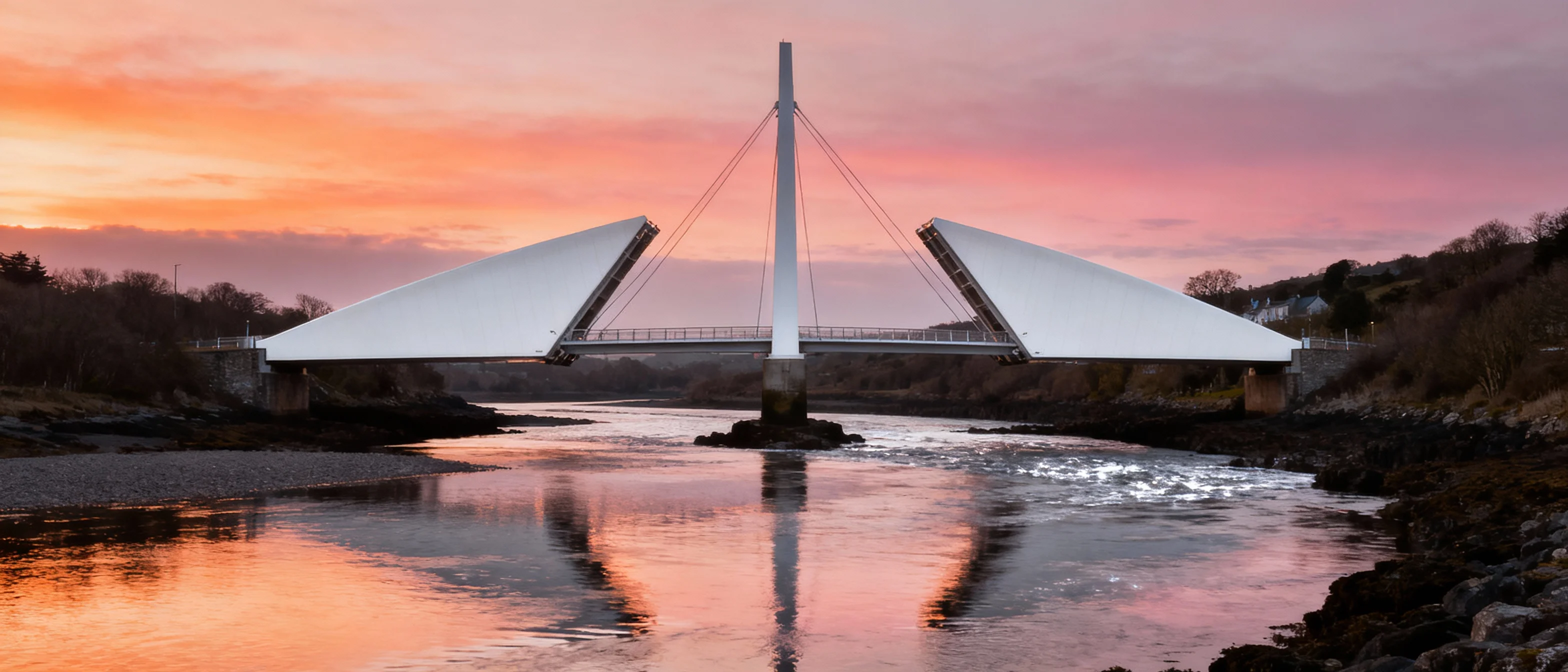 Конструкция моста напоминает веко огромного глаза, которое при движении поднимается и опускается.